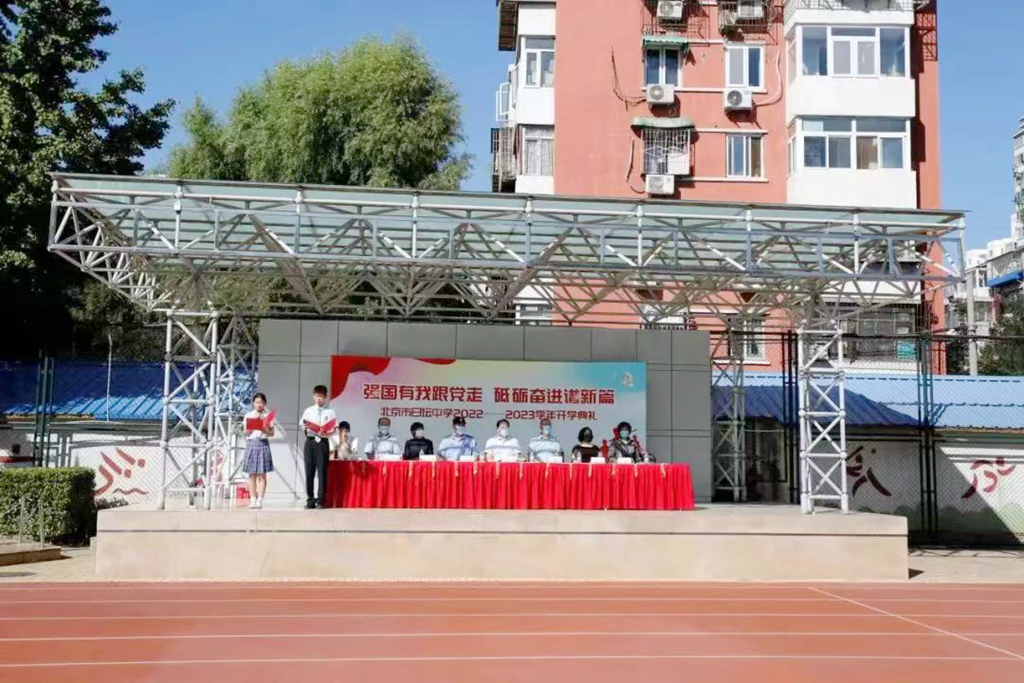发表日期:2022-09-01 来源:作者:金色九月,秋风送爽,丹桂飘香。九月一日上午九点,北京市日坛中学东润分校的全体师生们欢聚在校园,迎来了以“强国有我跟党走 砥砺奋进谱新篇”为主题的新学期开学典礼。