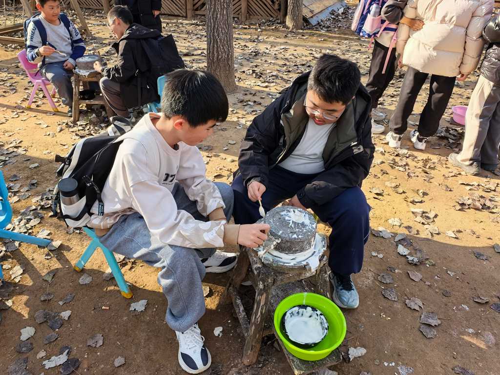 下午,学生们来到金叵罗农场,投身于田野间的劳动体验中。大家分组参与乘坐小火车、制作小米酥、磨豆浆、刨红薯、挖萝卜等农事活动,并在农场动物园中亲近自然、认识动物。活动中,学生们不仅锻炼了动手能力,也体会到劳动的价值与乐趣。