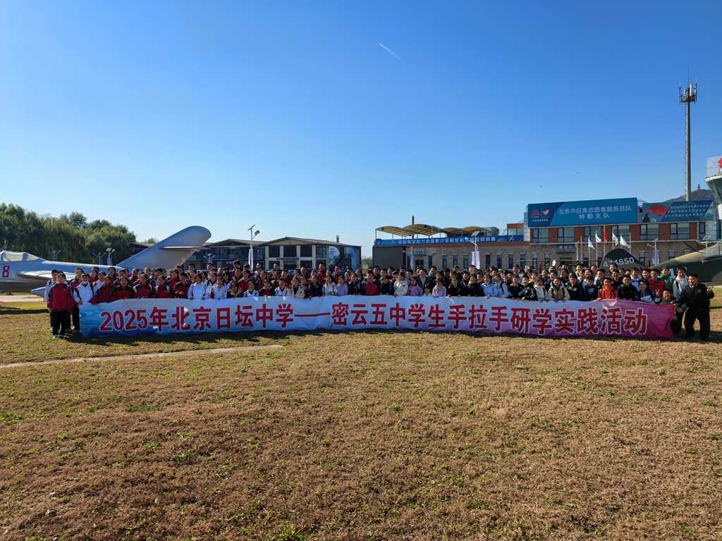 发表日期:2025-10-30 来源:作者: 为促进教育均衡发展,加强校际交流,2025年10月27日,北京市日坛中学与北京市密云区第五中学联合开展学生手拉手研学实践活动。本次活动以“航空科普+农耕体验”为主线,组织学生与教师代表前往密云穆家峪通用机场与金叵罗农场,开展为期一天的跨校研学与劳动教育。