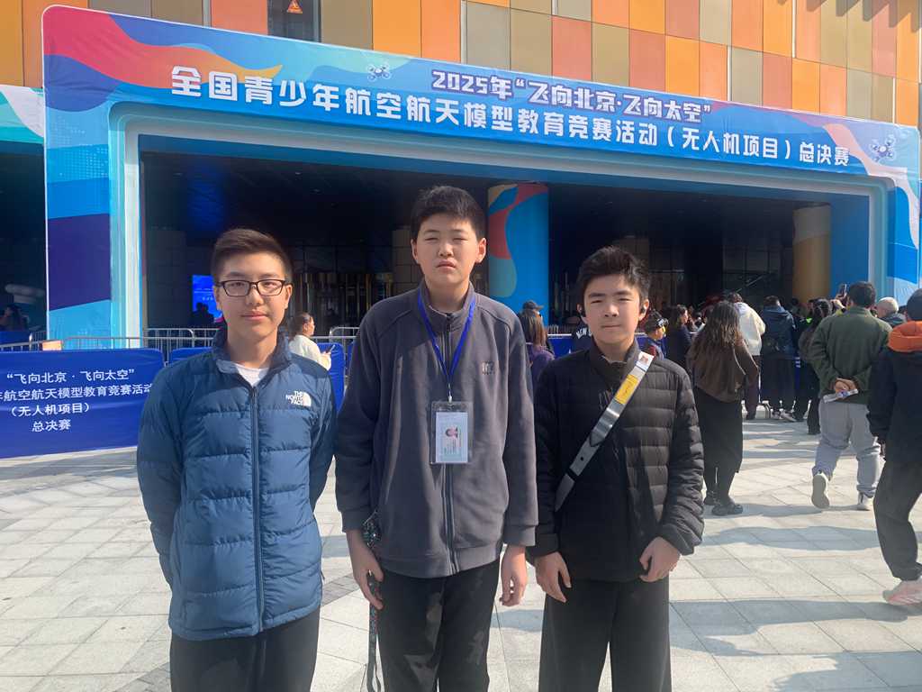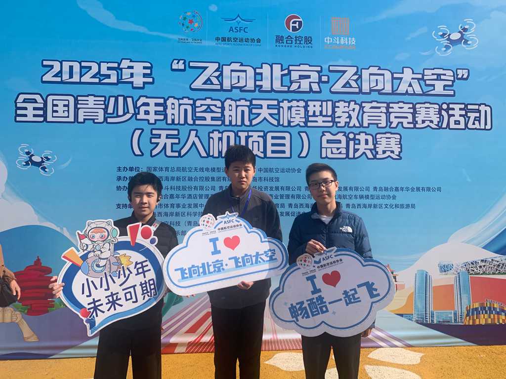 发表日期:2025-11-03 来源:作者: 10月27-31日,第二十六届“飞向北京 飞向太空”全国青少年航空航天模型教育竞赛活动(无人机项目)总决赛在青岛嘉年华会展中心开赛。作为教育部认可的全国性竞赛白名单赛事,此次盛会吸引全国近万名青少年选手同台竞技,北京市日坛中学3名学子代表学校参赛,在国家级赛场展现科技素养与竞技实力。