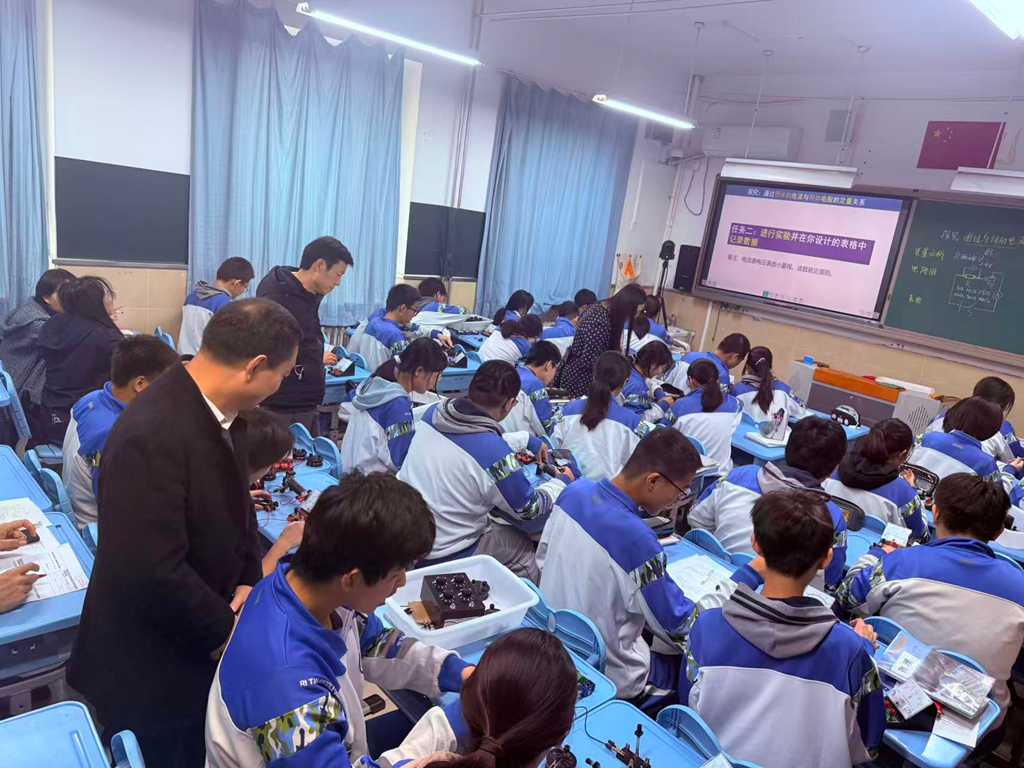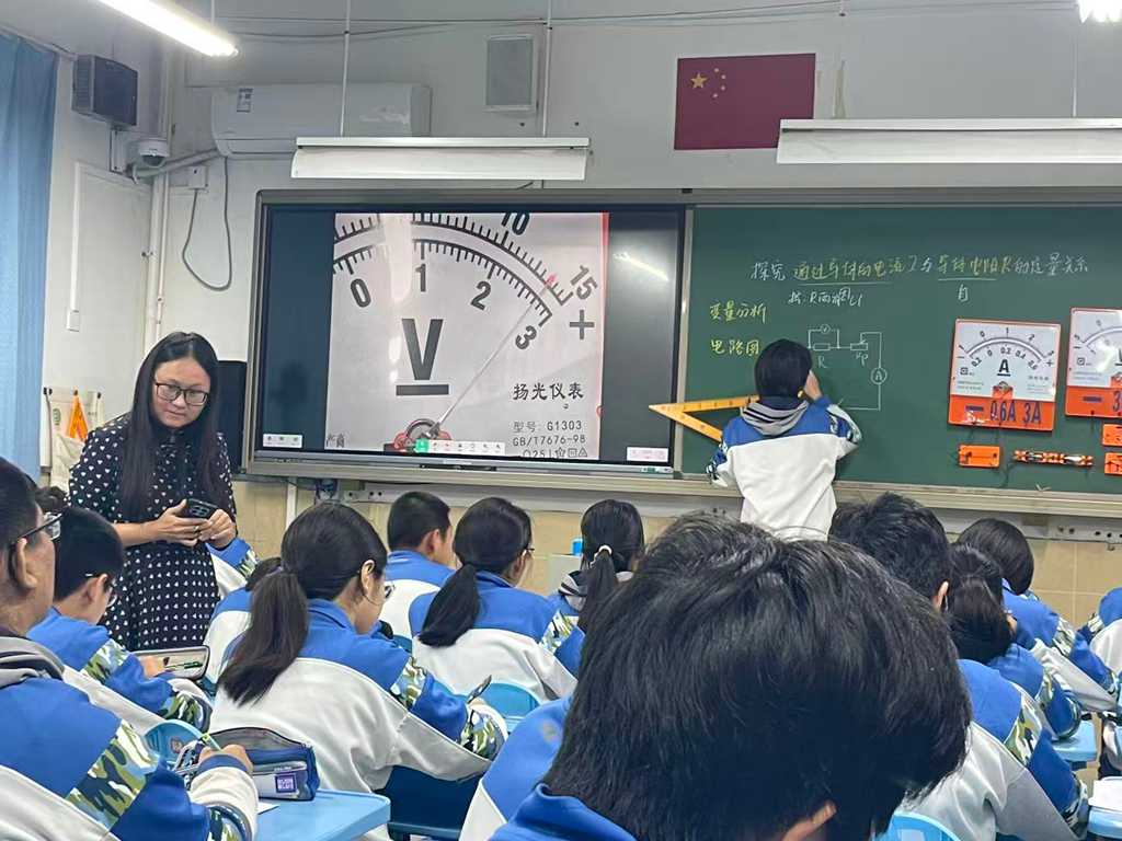初中部徐东立、刘祥两位老师分别呈现了 “运动图像的应用”专题复习课和“探究电流与电阻的关系”主题课。徐老师通过系统梳理知识点、精准突破重难点,以动画演示和科技生活情境,帮助学生构建完善的知识体系,落实考点突破重点;刘祥老师注重实验设计提升学生思维能力,学生主动参与科学探究,由问题引发思考,在方案的优化过程中加深理性思维。