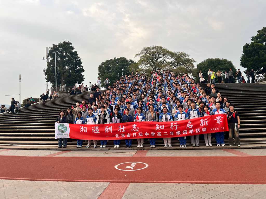 本次湖南研学不是孤立的活动,而是日坛中学本学年爱国主义教育体系中的重要实践环节。从开学初的“抗战胜利主题班会”“国防知识竞赛”,到“红色观影”“国旗仪仗队集训”,再到此次跨越千里的红色研学,学校逐步构建起“认知—体验—内化—践行”的全流程育人模式,实现爱国主义教育的阶梯式推进、系列化开展。