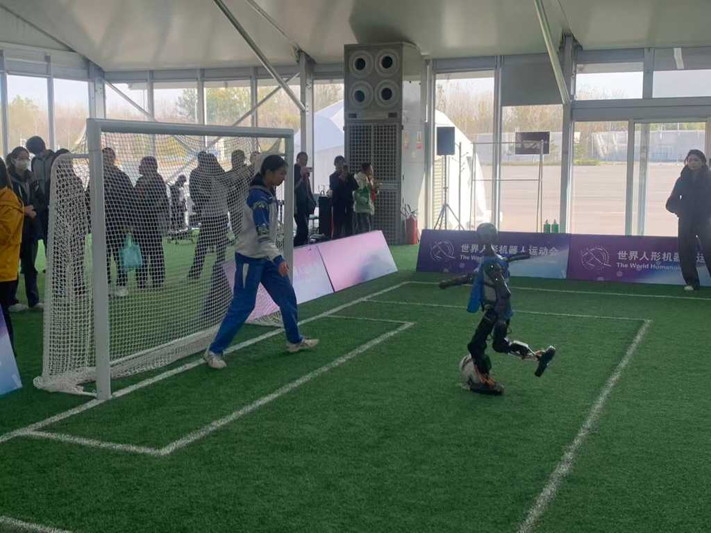 活动现场,学子们循着科技探索的脚步,依次参观了机器人综合训练区、赛事模拟区等核心功能区域。在训练区,人形机器人精准完成足球对抗、同步舞蹈等展演,灵活的动作与协同配合让同学们不时发出惊叹;互动环节中,大家踊跃参与点球对决,亲身感受机器人的反应速度与技术精度。