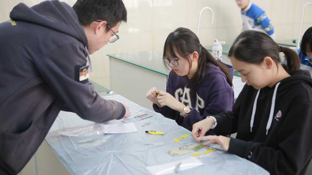 “力电强基,理工报国”,物理体验区化身为开放式实验室。同学们亲手连接电路,验证牛顿定律,在实验器材的辅助下,将抽象理论转化为可感现象。探索的热情在此点燃,科技报国的志向悄然生根。