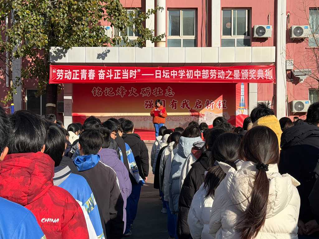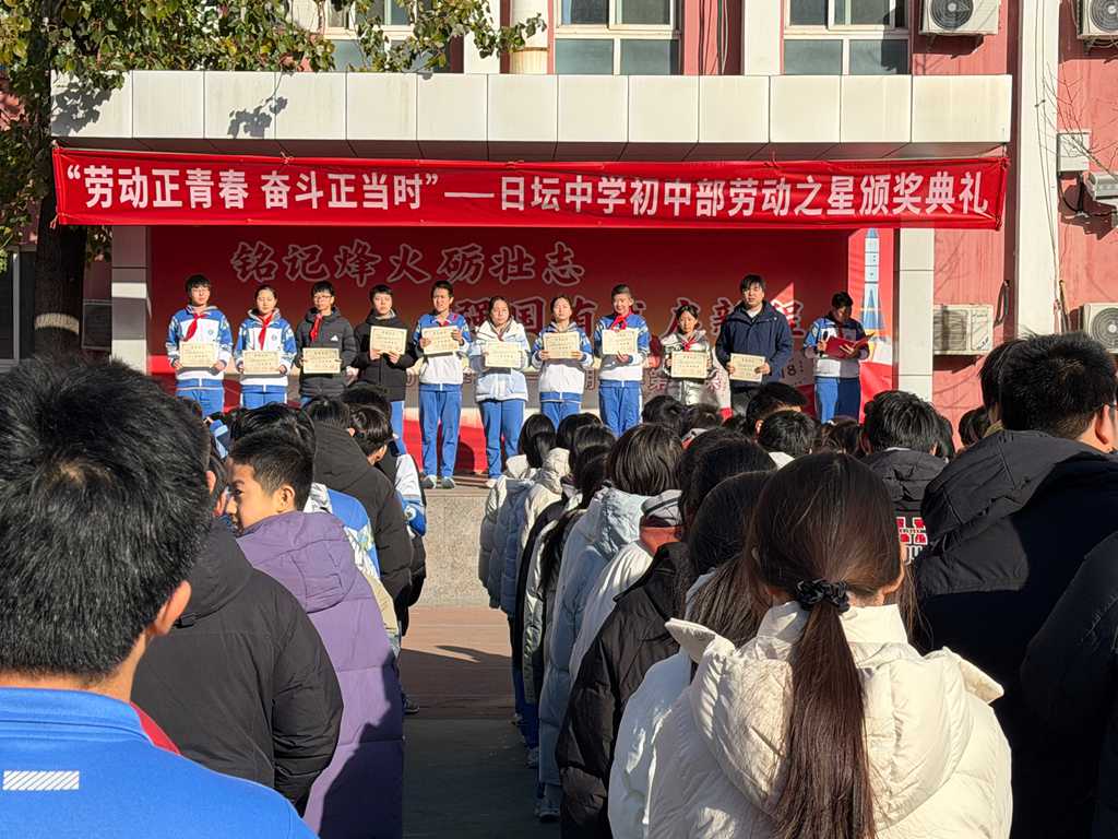 发表日期:2025-12-02 来源:作者: 12月2日,初中部全体师生齐聚操场,举行“劳动正青春 奋斗正当时”劳动之星颁奖典礼。