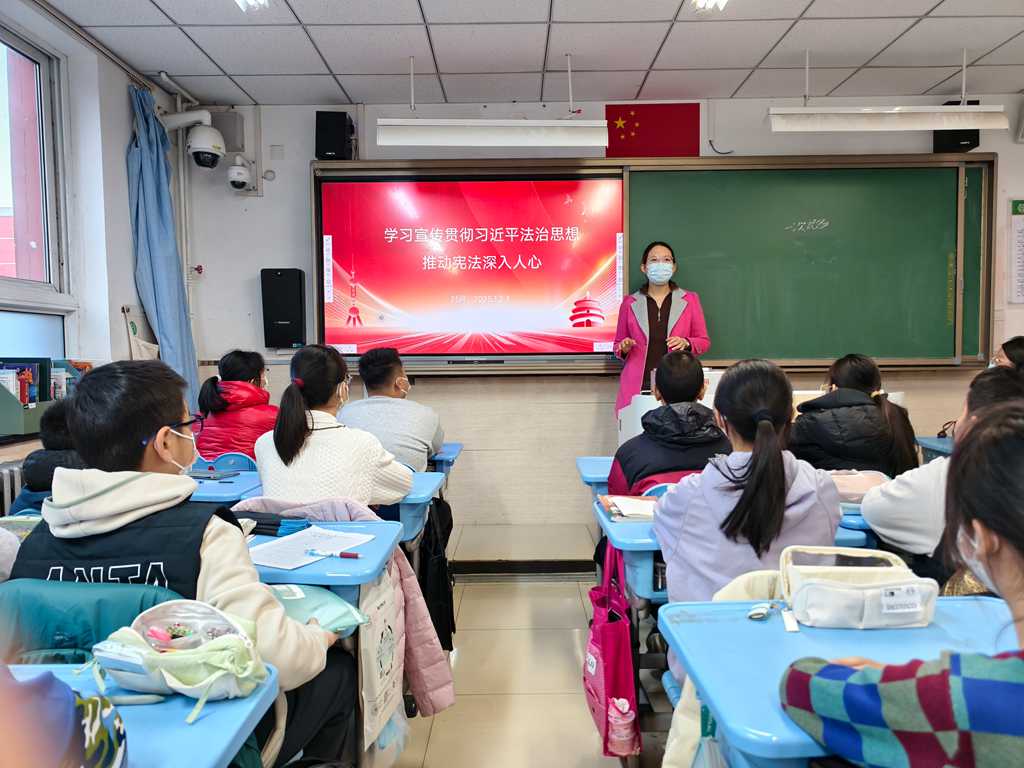 除面向学生的活动外,学校也积极组织全体教职员工参与宪法学习。通过开展集中学习、鼓励自主研读、组织宪法知识竞赛等多种途径,引导教职工深刻理解宪法内涵,自觉增强法治素养,做到以身作则、依法治教。为进一步检验学习成效,学校组织教师参与朝阳区教育系统“宪法知识”线上竞赛活动,以考促学,以学促用,激发教师们的学习热情,更推动宪法知识与教育教学实践深度融合,助力打造法治型教师队伍。