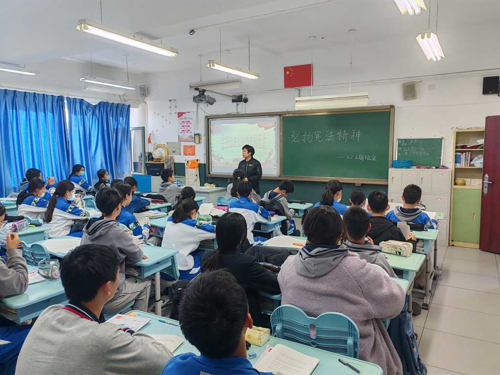 在主题班会活动中,通过案例解析、条文诵读、互动问答等丰富形式,将抽象的宪法知识与学生日常生活紧密结合,让学生直观感受宪法与自身的密切联系,让宪法学习真正走进课堂、走进心灵。