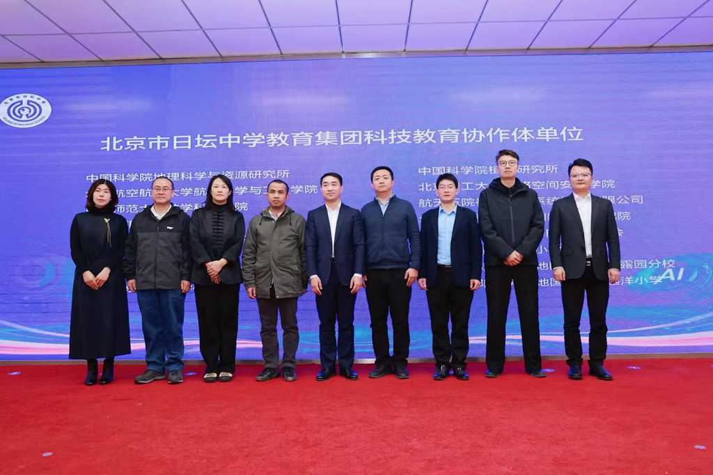 校科协联合中国科学院地理科学与资源研究所、北京航空航天大学航空学院、航天五院神舟智慧系统技术有限公司等十家高校、科研院所、企业和社会机构和集团六所学校共同成立日坛中学教育集团科技教育协作体。仪式上,各单位代表共同上台按下启动键。未来,协作体将进一步完善以“科学、技术、工程、数学”为重点的集团科技课程体系,搭建更广阔的科技平台,助力科技拔尖创新人才培养。