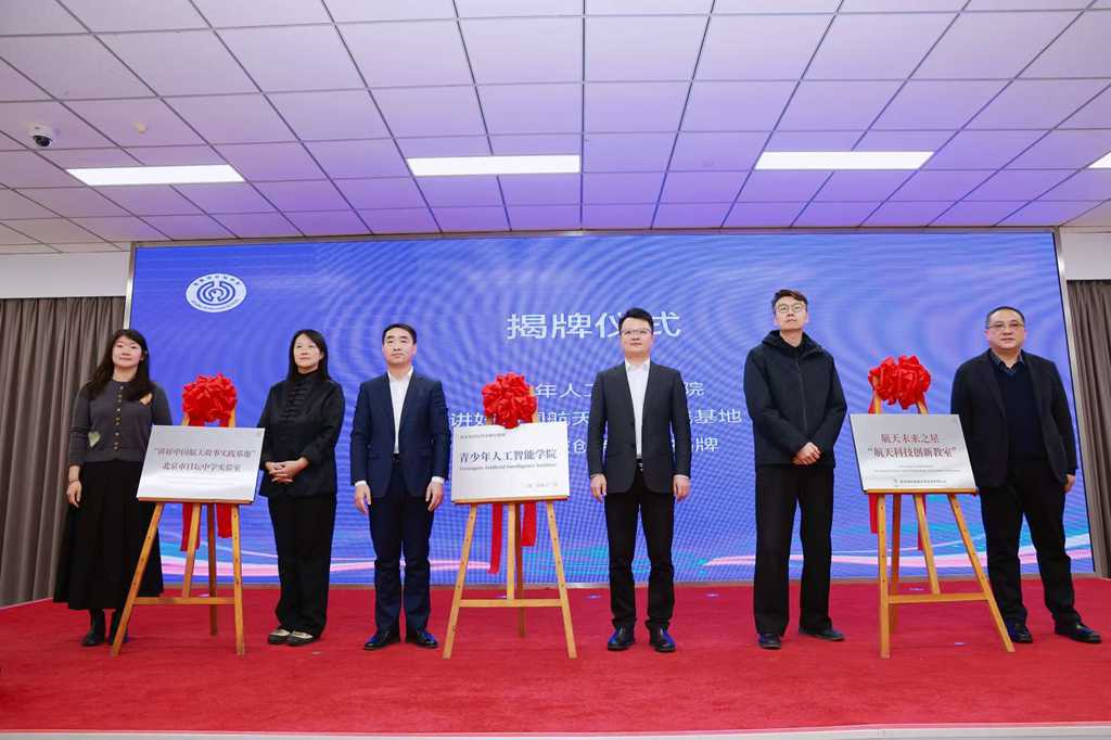 随后,协作体领导嘉宾代表共同为“青少年人工智能学院”“讲好中国航天故事实践基地”实验室及“航天科技创新教室”揭牌,汇聚各方智慧、搭建多元平台,共同助力青少年科创人才培养。