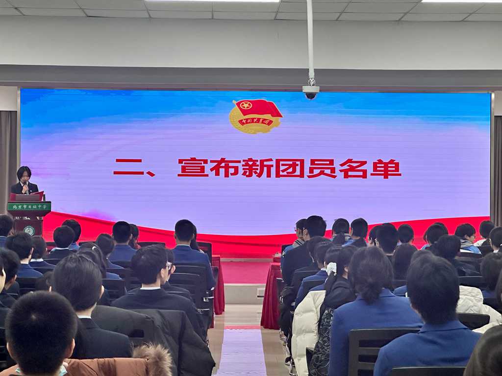 发表日期:2025-12-18 来源:作者: 岁末冬寒,挡不住青春的炽热与奋进的脚步。12 月 11 日,北京市日坛中学高中部举行2025年“挺膺担当向未来,青春建功‘十五五’”新团员入团仪式。全体新老团员、师生代表齐聚一堂,共同见证 97 名青年学子光荣加入中国共产主义青年团,开启青春奋斗的崭新篇章。