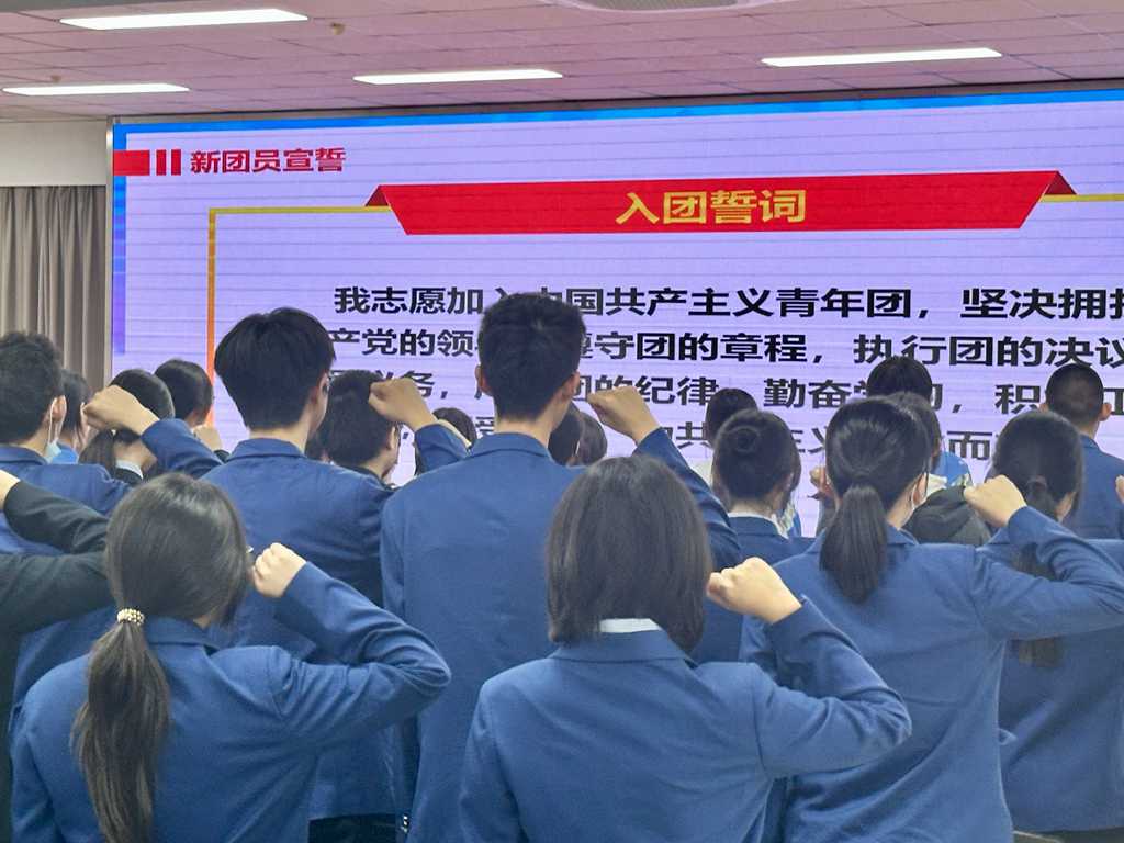 新团员们以最庄严的姿态起立,紧握右拳,在主持人的带领下庄严宣誓。铿锵有力的誓言响彻会场,字字千钧,筑牢了新时代青年听党话、跟党走的坚定信念,将责任感与使命感深深镌刻在每一位新团员的心中。