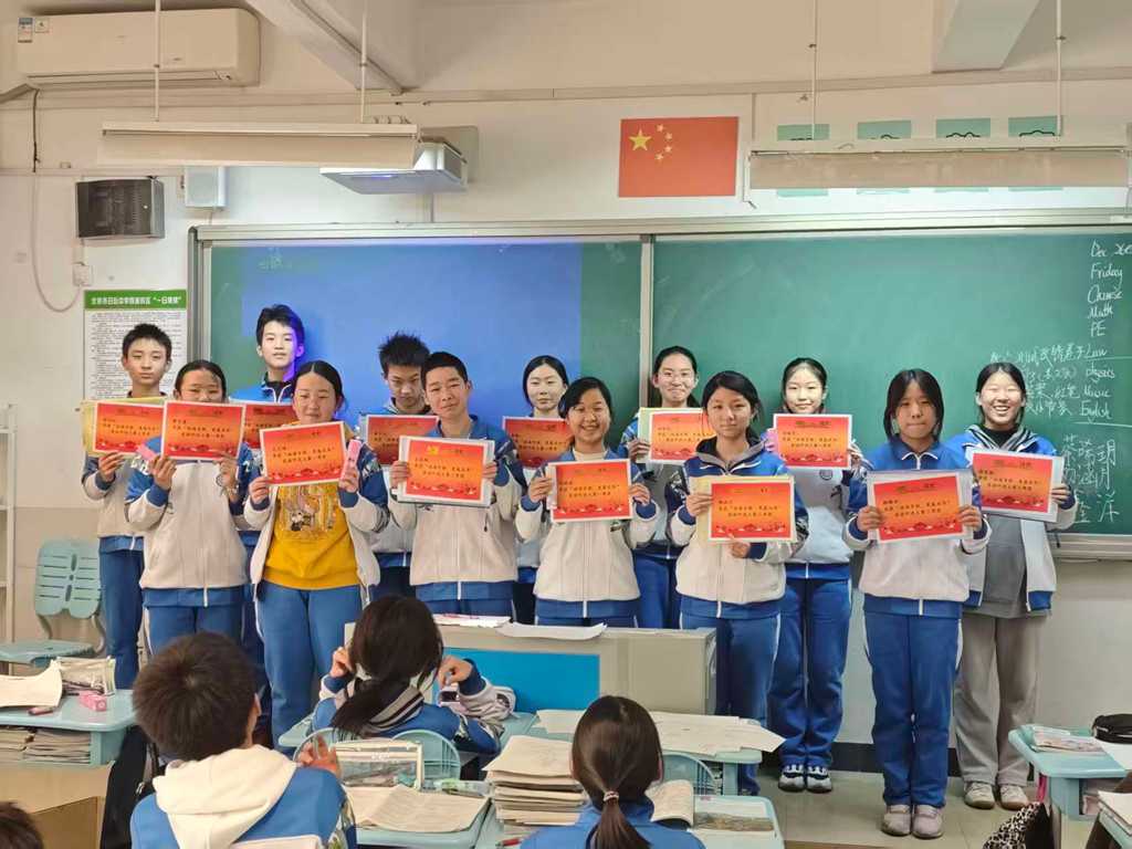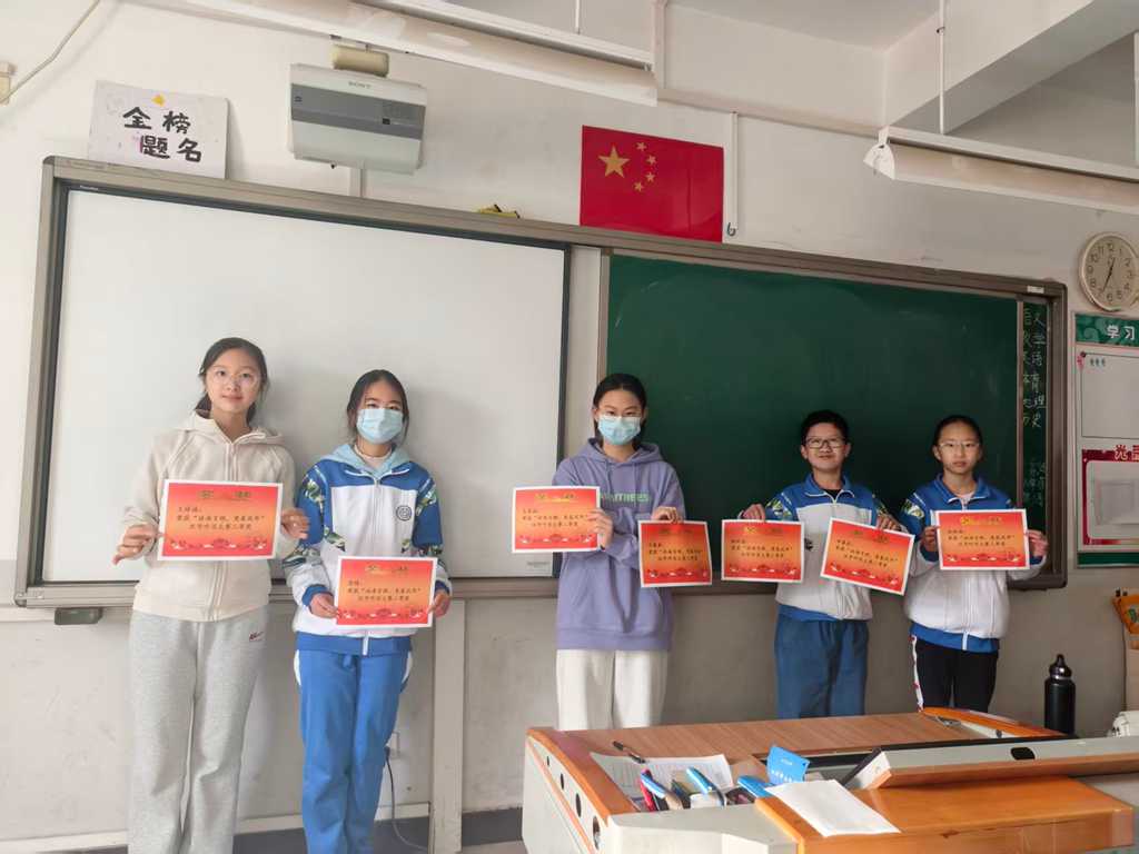 同学们认真复习、积极备战。赛后,各班对获奖的同学进行表彰。