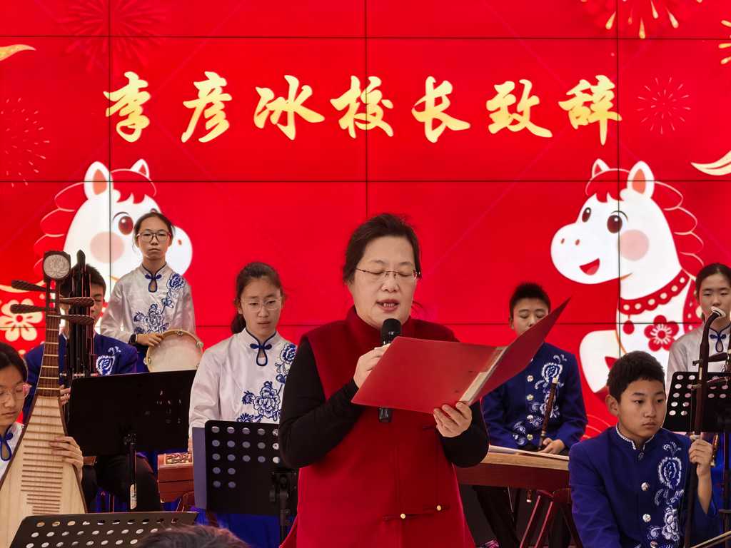 李彦冰副校长在新年致辞中回顾了学校一年来的发展与收获,向辛勤耕耘的教职工致以诚挚的新年祝福,寄语全体教师在新的一年里心怀热爱、奋勇前行。