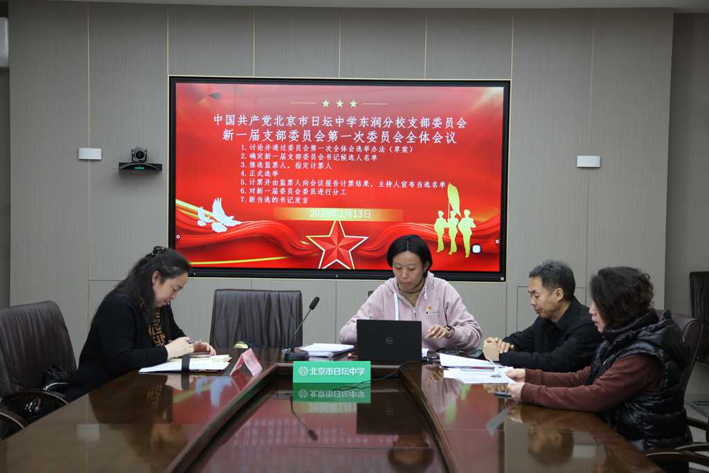 发表日期:2026-01-14 来源:作者: 2026年1月13日,北京市日坛中学东润分校党支部召开换届选举大会,党委副书记李静、东润分校党支部书记张钧及支部全体党员同志参会,党支部组织委员张滨乔主持会议。