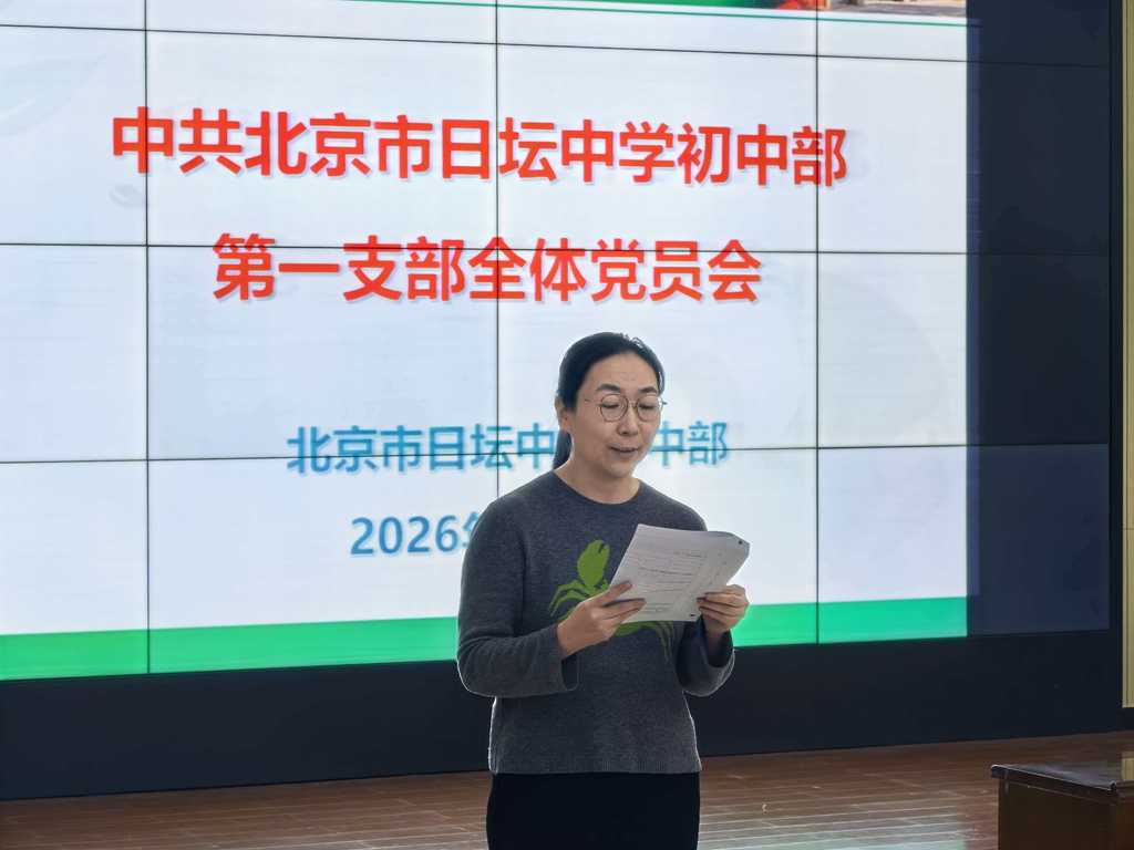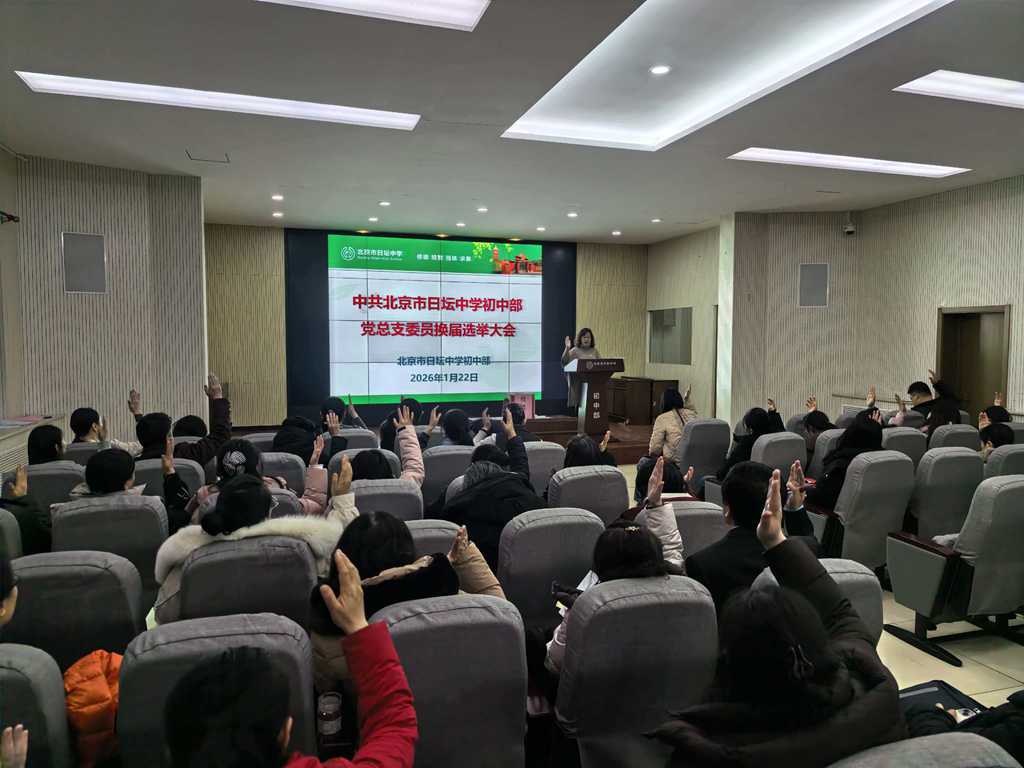 发表日期:2026-01-23 来源:作者: 1月22日,中共北京市日坛中学初中部党总支召开换届选举大会,全体党员参会。党总支书记李彦冰主持会议。