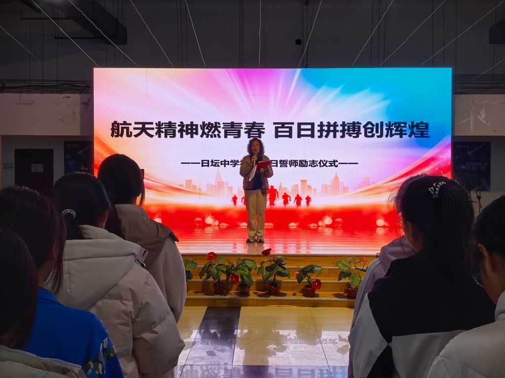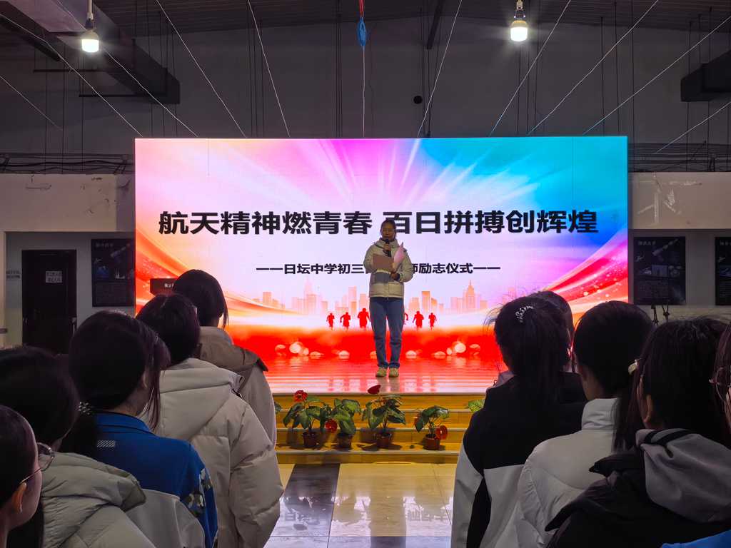 李彦冰副校长登台致辞,为全体学子送上殷切寄语,勉励大家以航天精神为引领,不畏艰难、勇毅拼搏、冲刺中考。